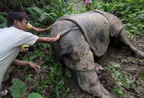 | A dead rhinoceros in Kaziranga National Park |